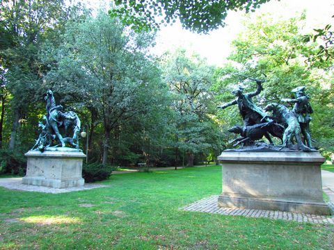 Skulptur Fuchsjagd und Skulptur Hasenhetze
