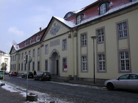 Herzogliche Reitbahn (auch herzogliche Reithalle und Marstall) 1756/57 errichtet; während der Regentschaft von Viktor Friedrich, Fürst von Anhalt - Bernburg. 1824/25 erfolgte von Herzog Alexius Friedrich Christian (1767-1834) ein Umbau mit Erweiterungen. Ab 1878 kaufte der Anhaltische Staat die Schloss-Anlagen auf. 1919/21 erfolgte ein weiterer Umbau zum Verwaltungshaus durch die Anhaltische Staatsbauverwaltung Bernburg. Dabei wurde eine völlig neue Raumstruktur geschaffen, Treppen und Flure wurden in Art Deco gestaltet. Heute ist es Rathaus II.