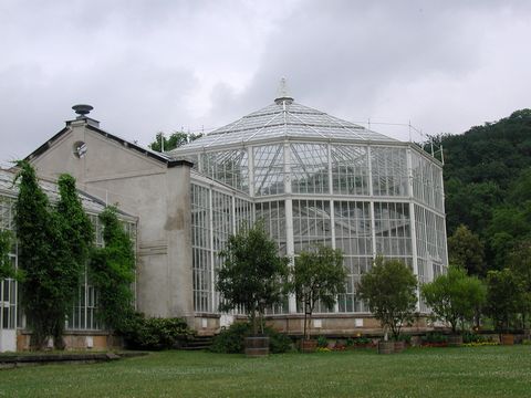 Das botanische Interesse vom Kurfürst Friedrich August III. und seinem Neffen führte zu Ankäufen ganzer Pflanzensammlungen, so dass 1859 mit dem Bau eines Pflanzenhauses begonnen wurde. Das 1861 fertiggestellte Palmenhaus galt damals als das größte Gewächshaus Deutschlands.