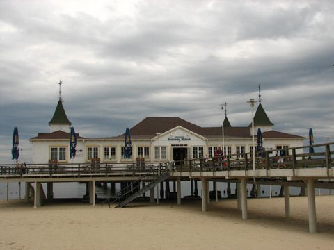 Wahrzeichen des Ortes ist die historische Seebrücke, die an der Strandpromenade beginnt, sich über den breiten Strand zieht und rund 300 m in die Ostsee hinausragt. In zwei Etappen wurde die Brücke errichtet: 1882 und 1898 wurde der vordere Bereich gestaltet. Dieser ungefähr 100 m lange Abschnitt schließt mit einer Plattform ab, auf der mit Ecktürmchen geschmückte Pavillonbauten stehen. Bis 1907 wurde dann in einem zweiten wichtigen Bauschritt der Seesteg angefügt. Während der ältere Abschnitt mit den Pavillonbauten, in denen sich heute ein Restaurant befindet, noch mehr oder weniger im Originalzustand vorhanden ist, war der lange Seesteg zwischenzeitlich in die Brüche gegangen, ist aber mittlerweile wieder hergestellt worden.