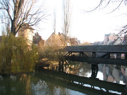 1457 als Holzsteg errichtet. Vom 16.–19. Jh. wohnte im Turm und dem gedeckten Wehrgang über der Pegnitz derHenker. Nach dem Hochwasser von 1595 wurden drei Stadtmauerbögen über dem südlichen Pegnitzarm abgerissen und durch den hölzernen, ziegelgedeckten Henkersteg (1954 rekonstruiert) ersetzt.