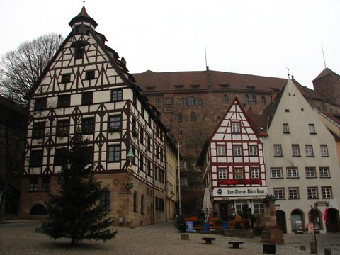 Vom Tiergärtnertorplatz führen vier Gassen strahlenförmig den Berg hinunter. Am Platz liegen das Pilatushaus, das Dürerhaus und der Historische Kunstbunker.