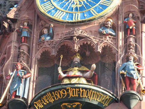 1355–58 ließ Kaiser Karl IV. anstelle der abgerissenen Synagoge (Pogrom 1349) die erste gotische Hallenkirche Frankens als dreischiffige kaiserliche Hofkapelle errichten. Vermutlich führte Peter Parler, Baumeister des Prager Veitsdomes, den Bau aus. 1361 wurden hier zur Taufe des Thronfolgers Wenzel erstmals die Reichskleinodien der Öffentlichkeit gezeigt. Das „Männleinlaufen“ (12 Uhr mittags), 1509 von Sebastian Lindenast und Georg Heuß geschaffen,erinnert an die Verkündung der Goldenen Bulle von 1356: Sieben Kurfürsten huldigen dem thronenden