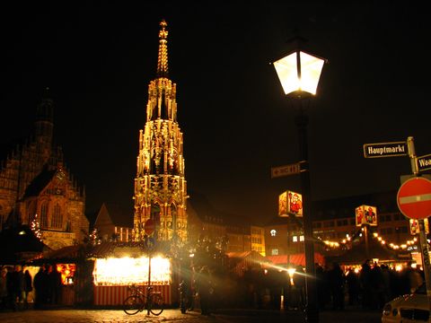 Nürnberg bei Nacht - Hauptmarkt mit Schöner Brunnen