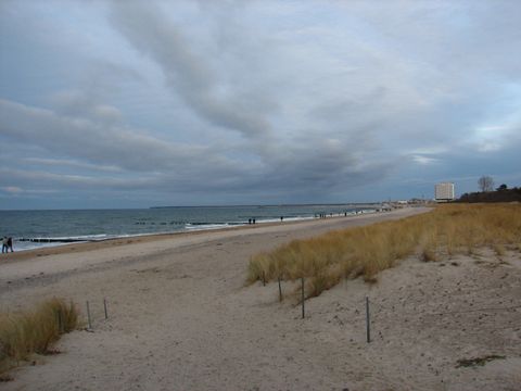 Am Strand in Richtung Ortszentrum von Warnemünde
