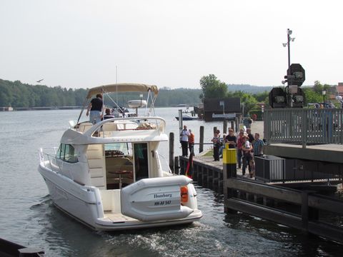 Drehbrücke Malchow - geöffnet für die Schiffsdurchfahrt