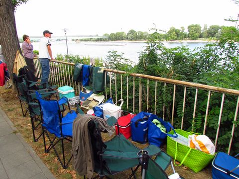 Schon weit vor der Veranstaltung kamen die Zuschauer mit Getränken und Essen zum Picknick an den Rhein.